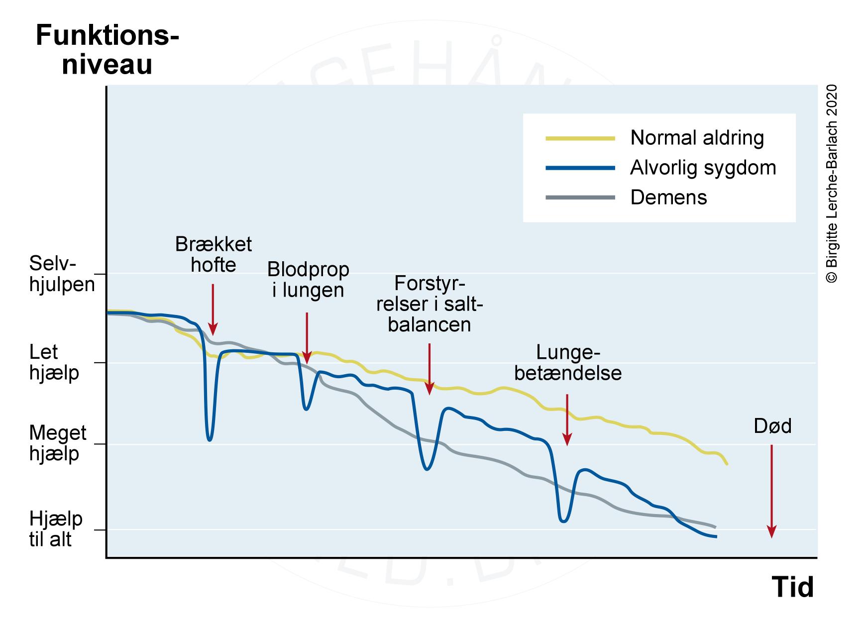 De ældre patienter med flere kroniske sygdomme har også stor risiko for, at der tilstøder komplikationer i forbindelse med, at de er indlagt. Det kan fx være infektioner, akut forvirring eller tryksår. Desuden ses et stort muskel-, vægt- og funktions-tab ved sengeleje, også selvom det kun er få dage.