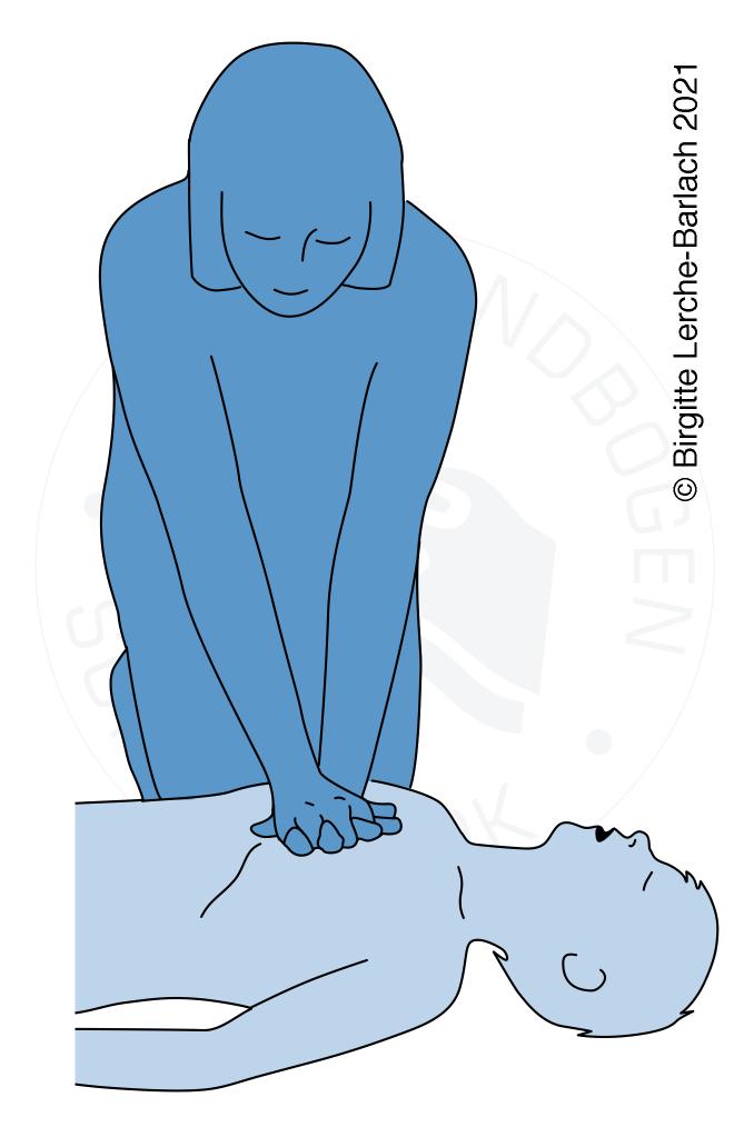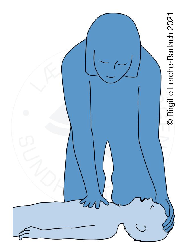- Efter 15 kompressioner gives 2 indblæsninger med mund-til-mund (15:2).