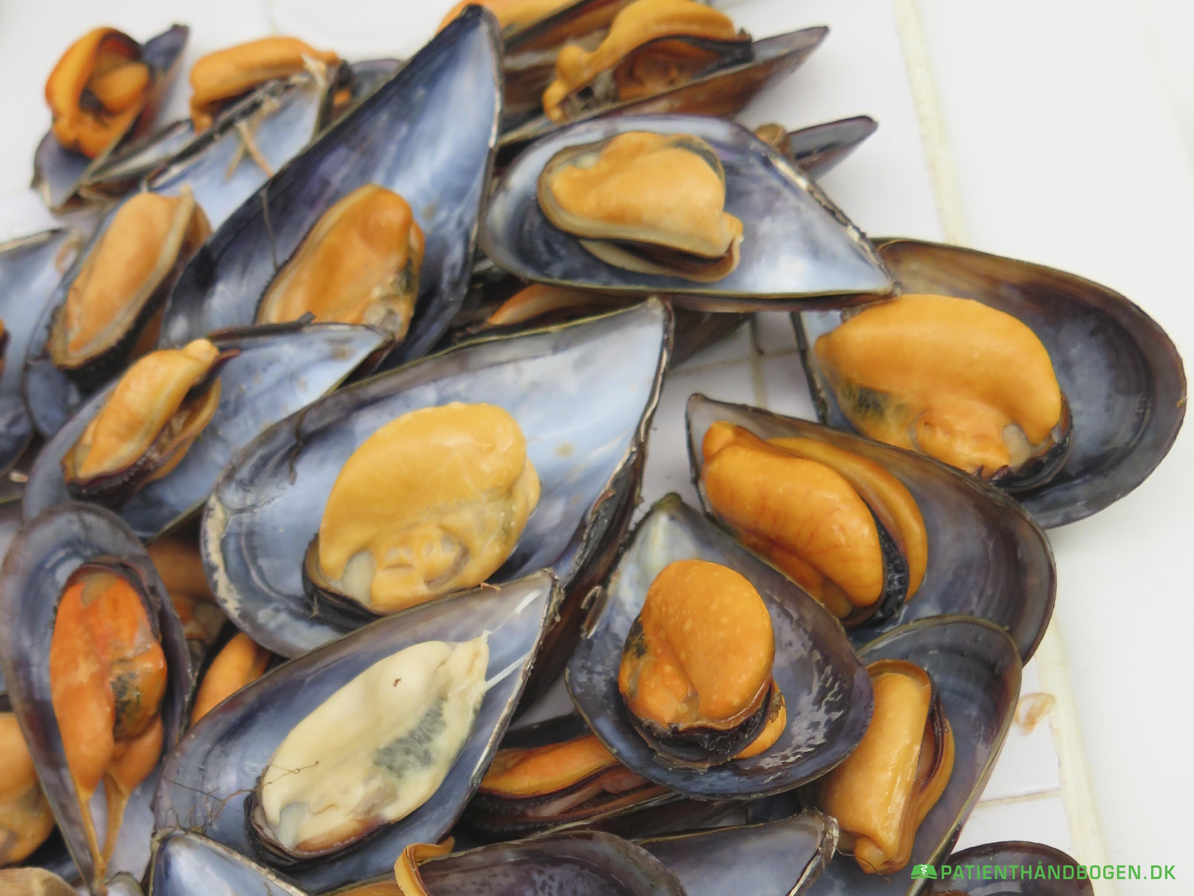 I sjældne tilfælde er der giftstoffer fra plankton i blåmuslinger