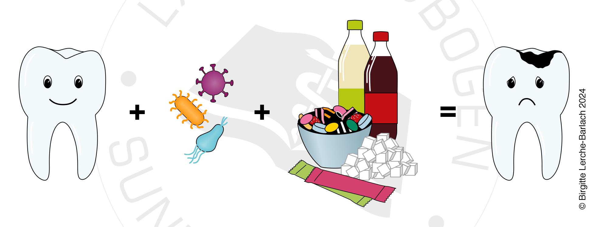 Særligt i forhold til tandsundheden har mængden og hyppigheden af sukkerholdige måltider betydning. Alle mennesker har nemlig bakterier i munden. Nogle af bakterierne omdanner sukker til syre. Den syre kan lave huller i tænderne. Derfor har det barnet spiser stor betydning i forhold til, om der kan komme huller i tænderne.