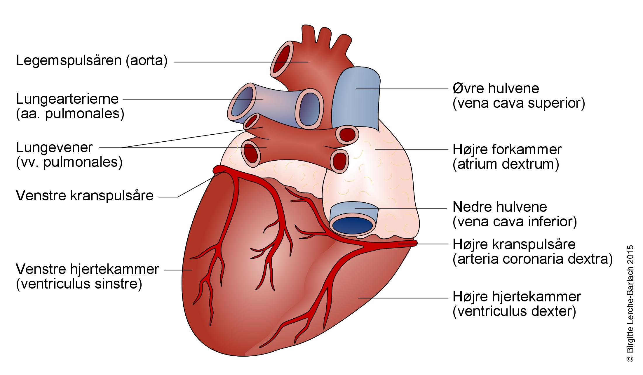 Tegning af normalt hjerte bagfra