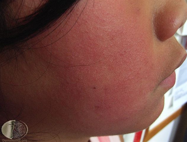 Foto af ansigt med udslæt på kinderne grundet lussingesyge.