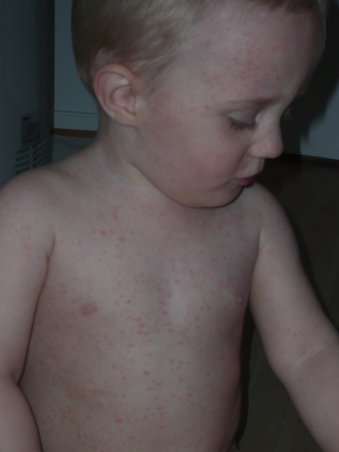 Foto af barn med mæslinger.