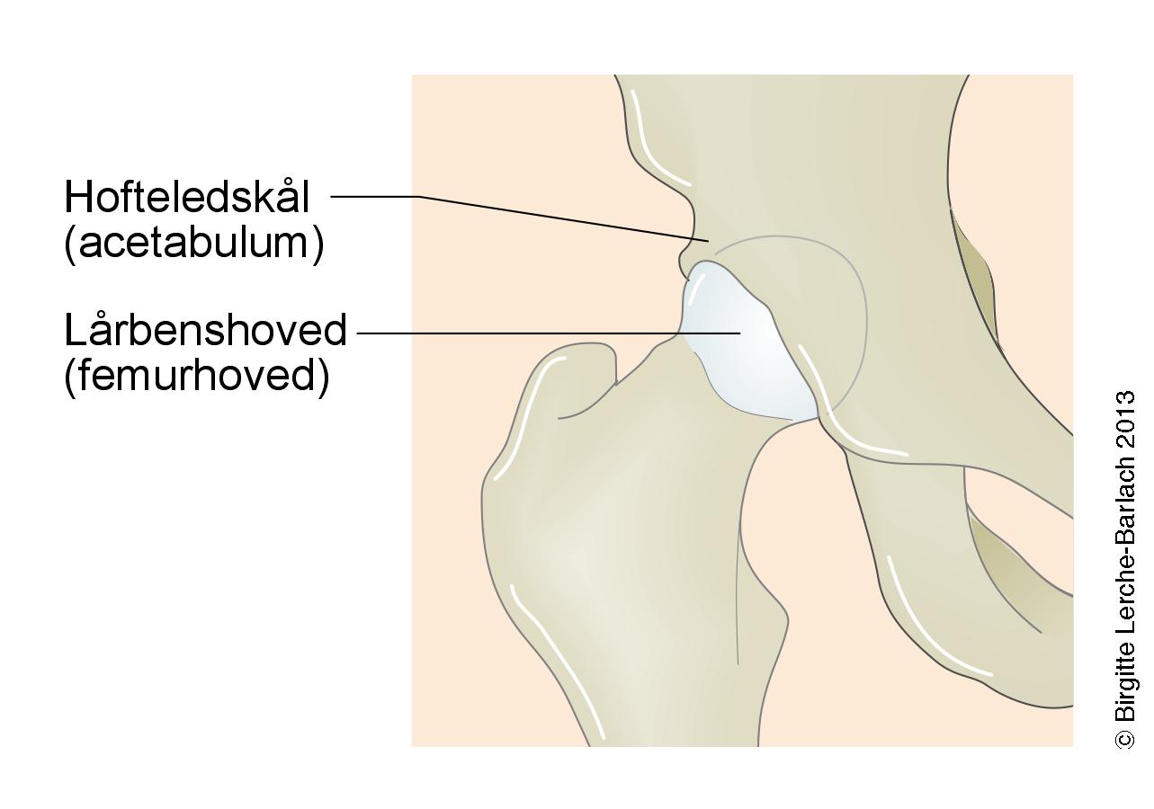 Hos børn med hofteledsdysplasi er denne skål for flad og står stejlt. Lårbenet kan da lettere "smutte" lidt ud af hofteskålen, dvs. at hoften går ud af led.