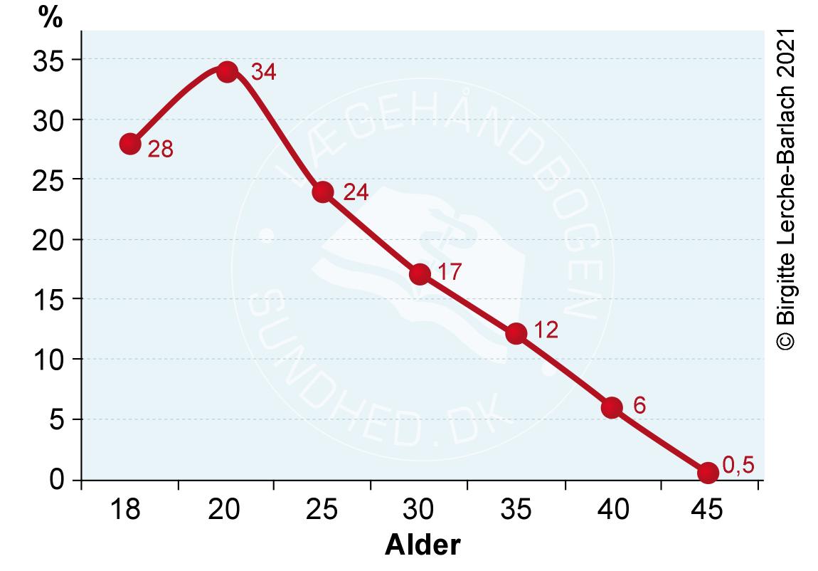 Figur 1. Månedlig sandsynlighed for at opnå graviditet, der fører til fødsel af levende barn (%)