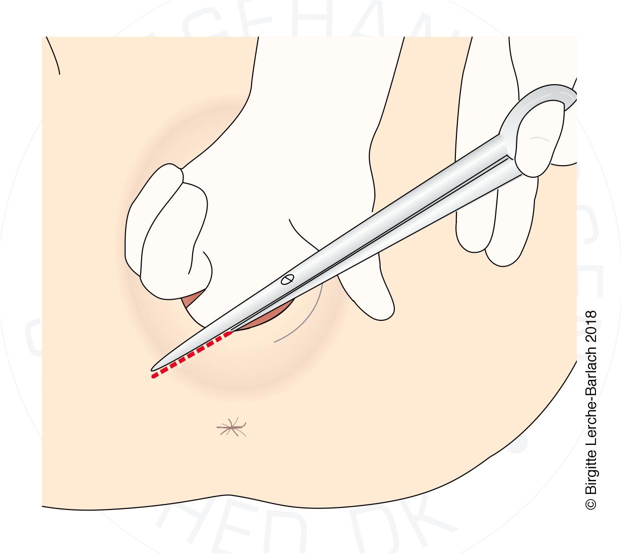 Man lægger normalt en lokalbedøvelse, før jordemoderen eller lægen klipper. Man klipper først, når barnets hoved står på bækkenbunden og under en ve, hvor vævet er udspændt. Et klip i mellemkødet skal syes sammen igen efter fødslen.