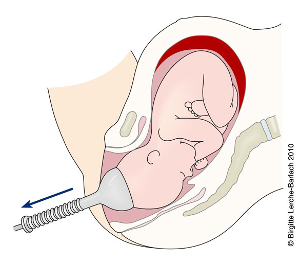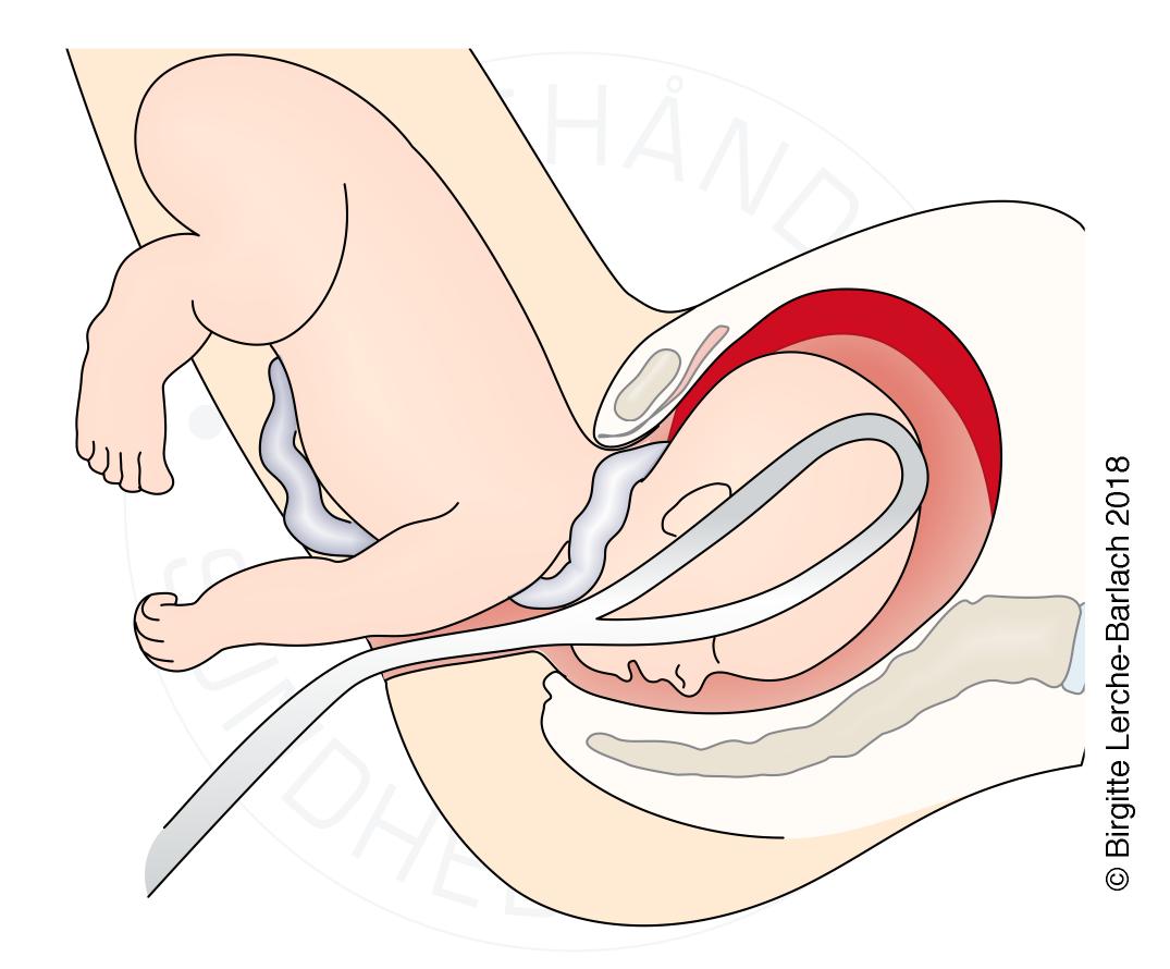 Tegning af forløsning med sugekop (vakuumekstraktion)