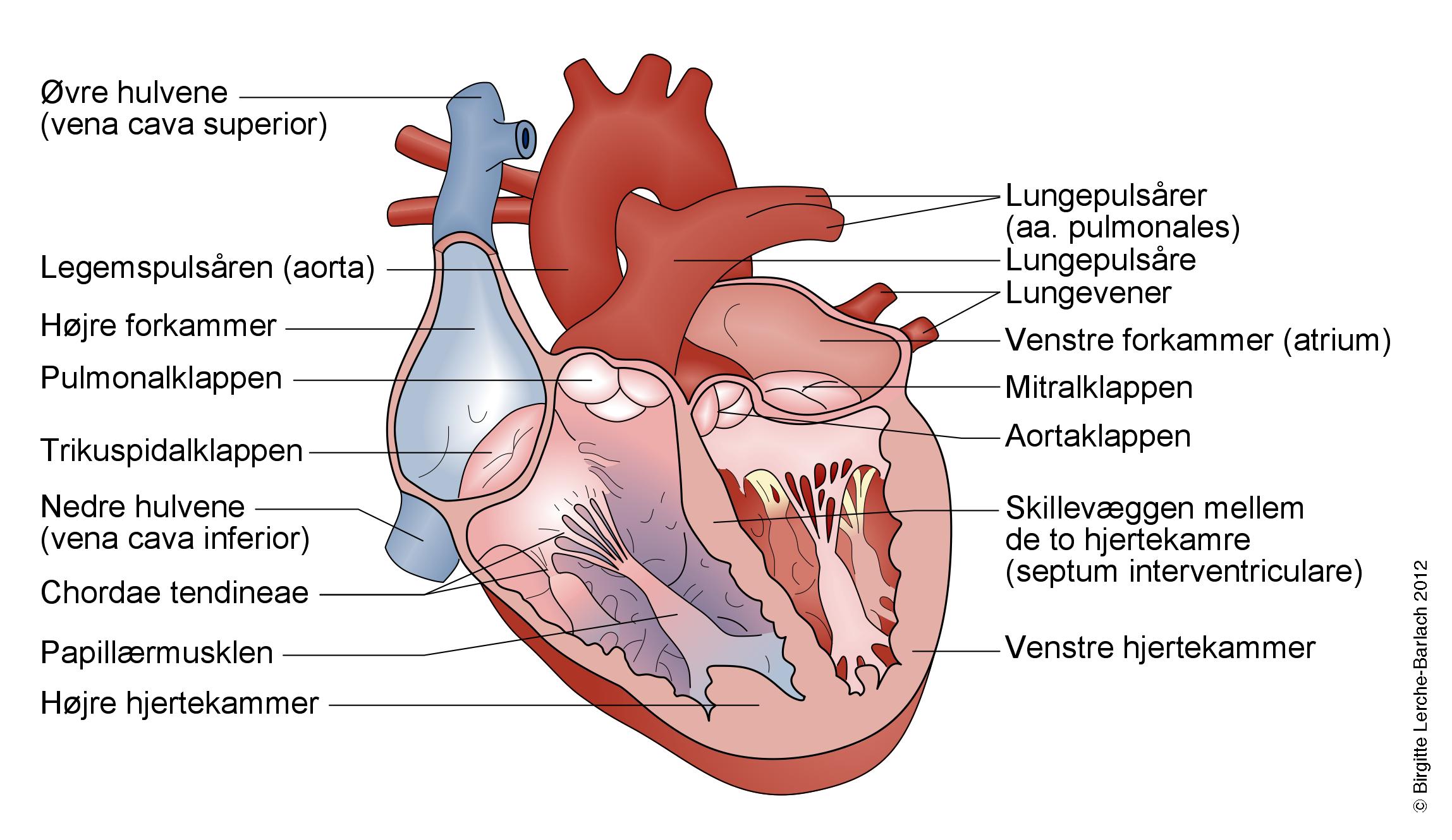 Tegning af normalt hjerte indvendigt
