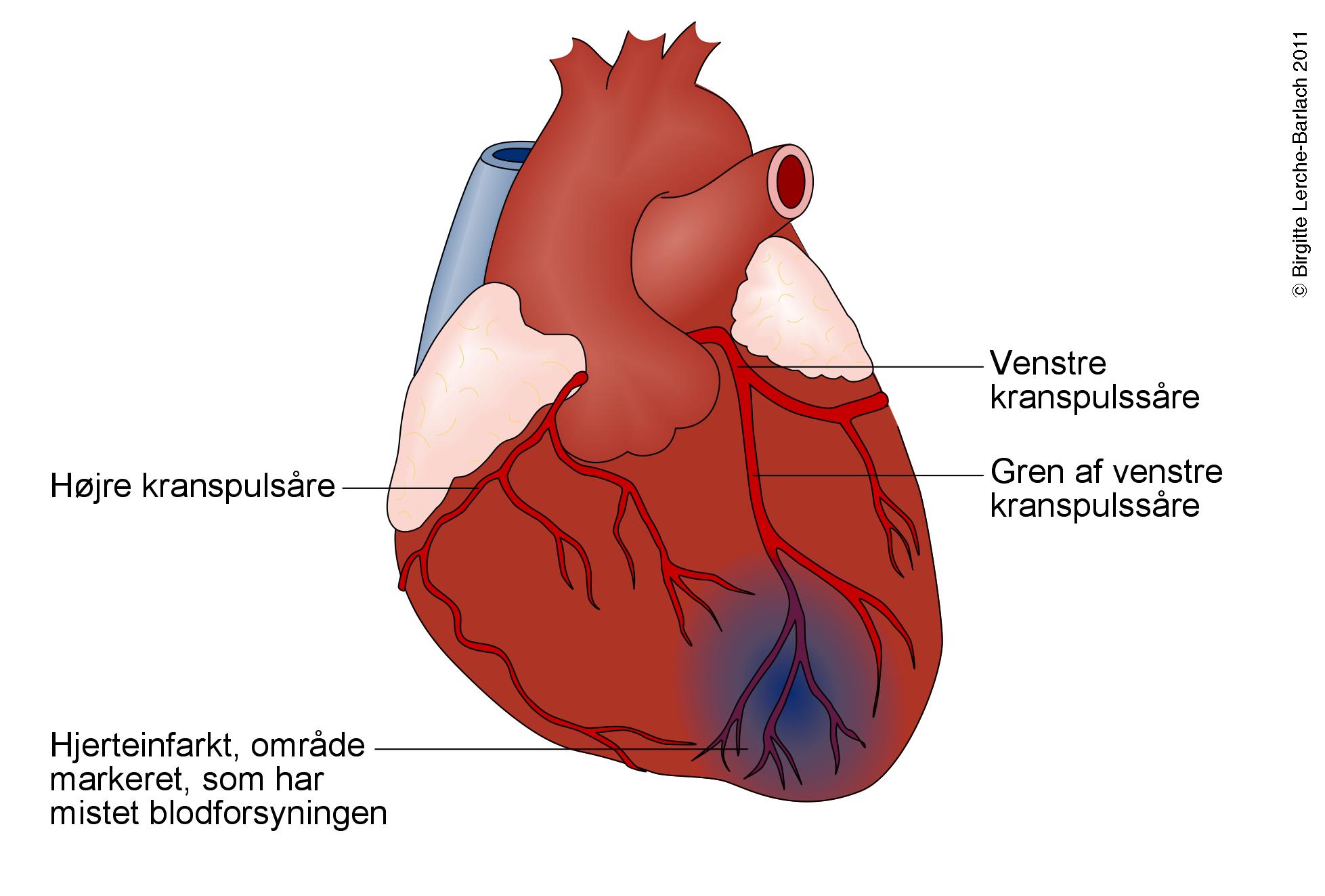 Der er flere blodårer, der forsyner hjertemusklen. Graden af skade afhænger af, hvilket blodkar der er blokeret.