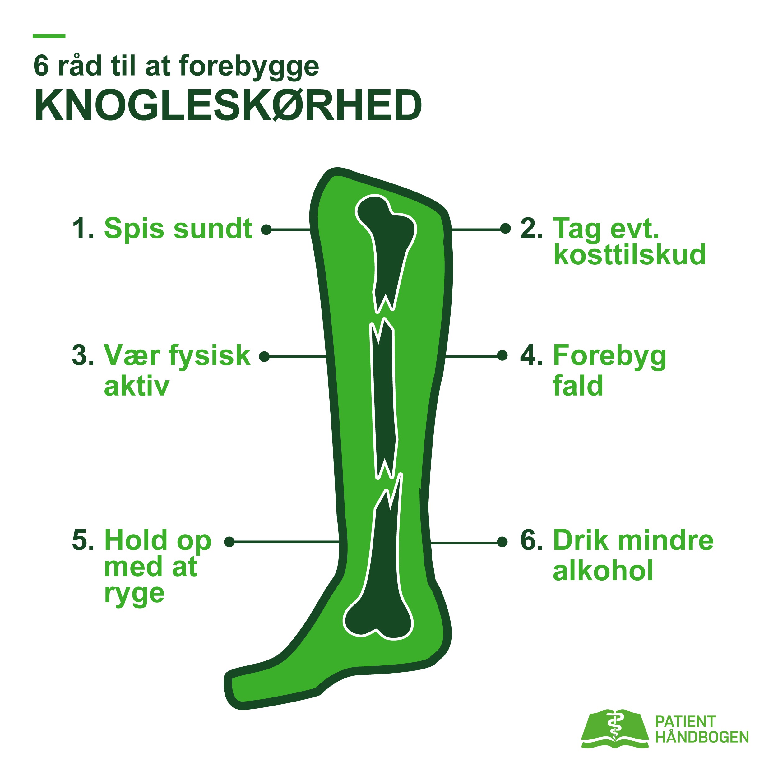 Disse ændringer i livsstil hjælper dig, der allerede har fået knogleskørhed. De forhindrer også, at unge mennesker får knogleskørhed.