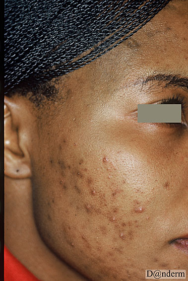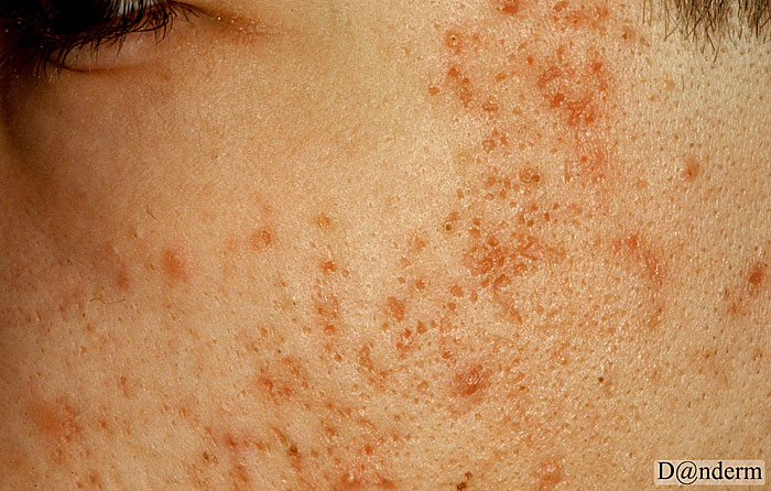 Moderat akne med komedoner og papler, foto udlånt af Danderm