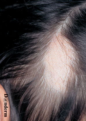Oftest forsvinder håret i et cirkulært område. Huden i området er helt glat, og der er ingen tegn på dannelse af ar.