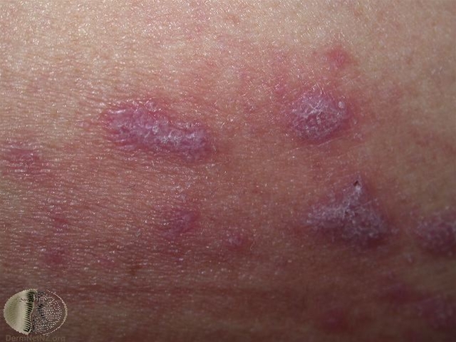 Lichen planus på ben. Foto venligst udlånt af DermNet