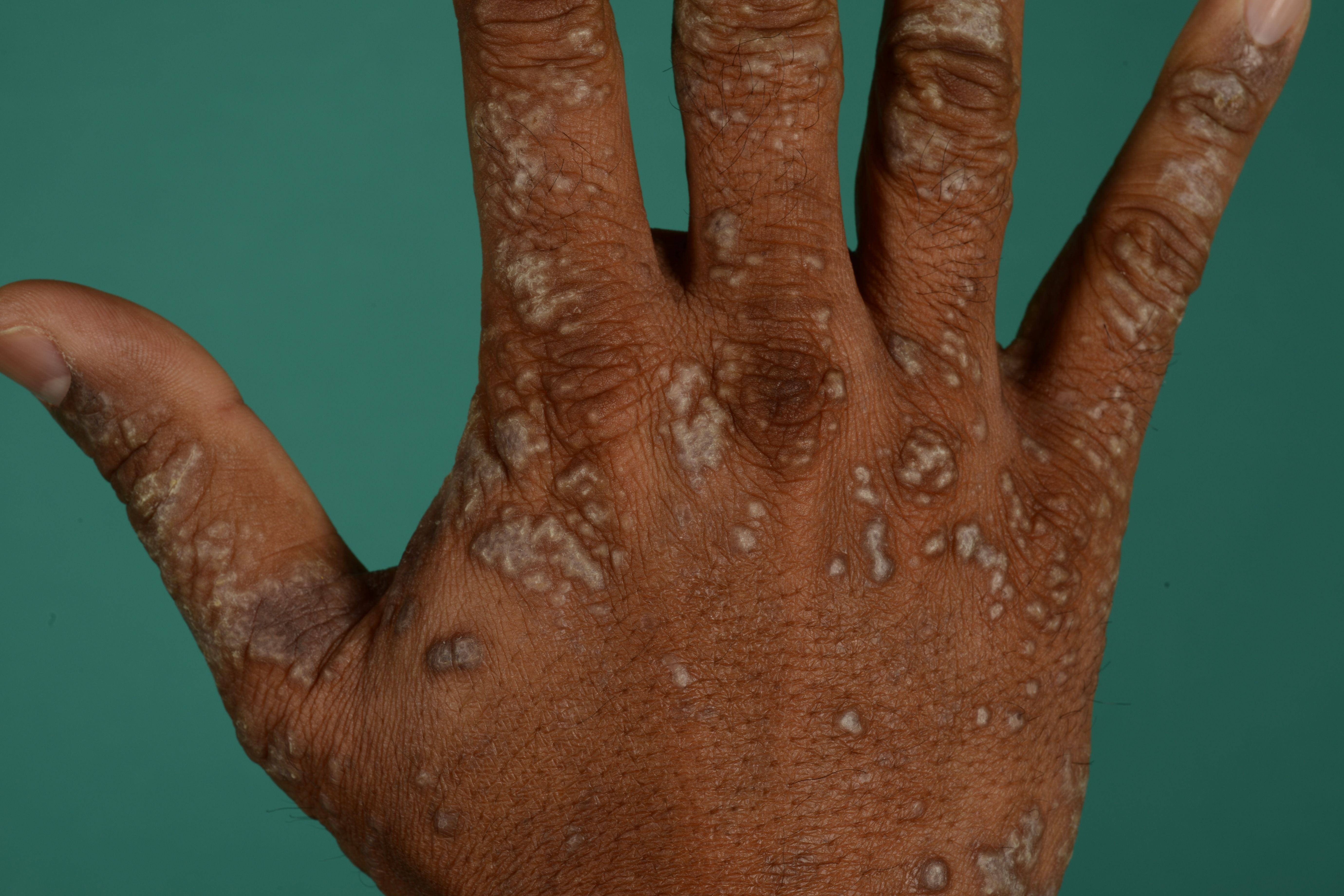 Den er mest almindelig på underarme og underben, men kan sprede sig til resten af kroppen