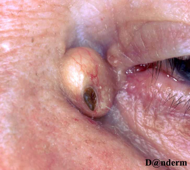 Forstørret talgkirtel i øjenkrogen. Foto venligst udlånt af Danderm