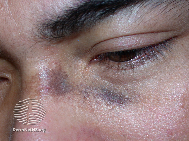Ota nævus ved øjet. Foto venligst udlånt af DermNetFoto af en sjælden type modermærke, der kaldes Ota Nævus