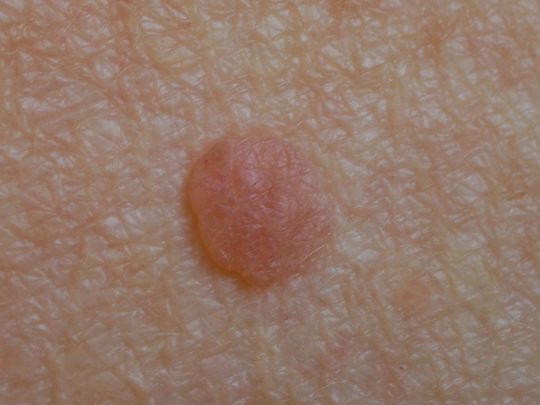 Foto af et almindeligt, godartet rød-orange modermærkeFoto af almindeligt rød-orange modermærke