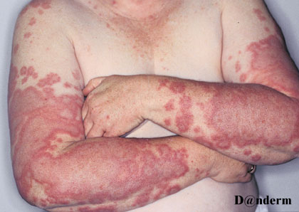 Udslættet kan variere af udseende. Det kan opstå umiddelbart efter start af behandlingen, eller i ugerne efter behandlingen er stoppet