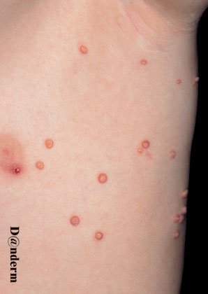 Eksempel på samling af vandvorter på brystet af barn. Foto venligst udlånt af Danderm