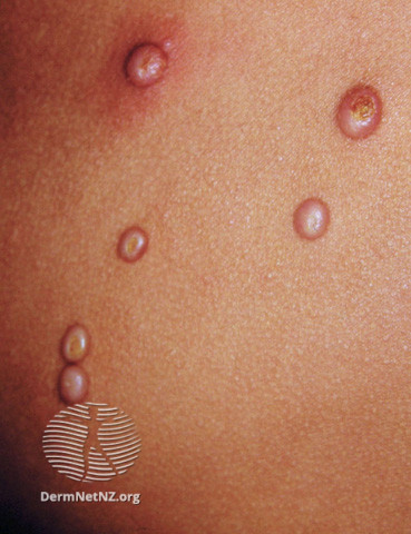 Mollusker hos voksne, som sidder på andre dele af kroppen (ikke på kønsdelene), ses især hos personer med nedsat immunforsvar