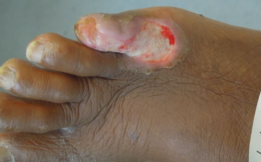 Pyodermasår på lilletåFoto af pyodermasår på lilletå