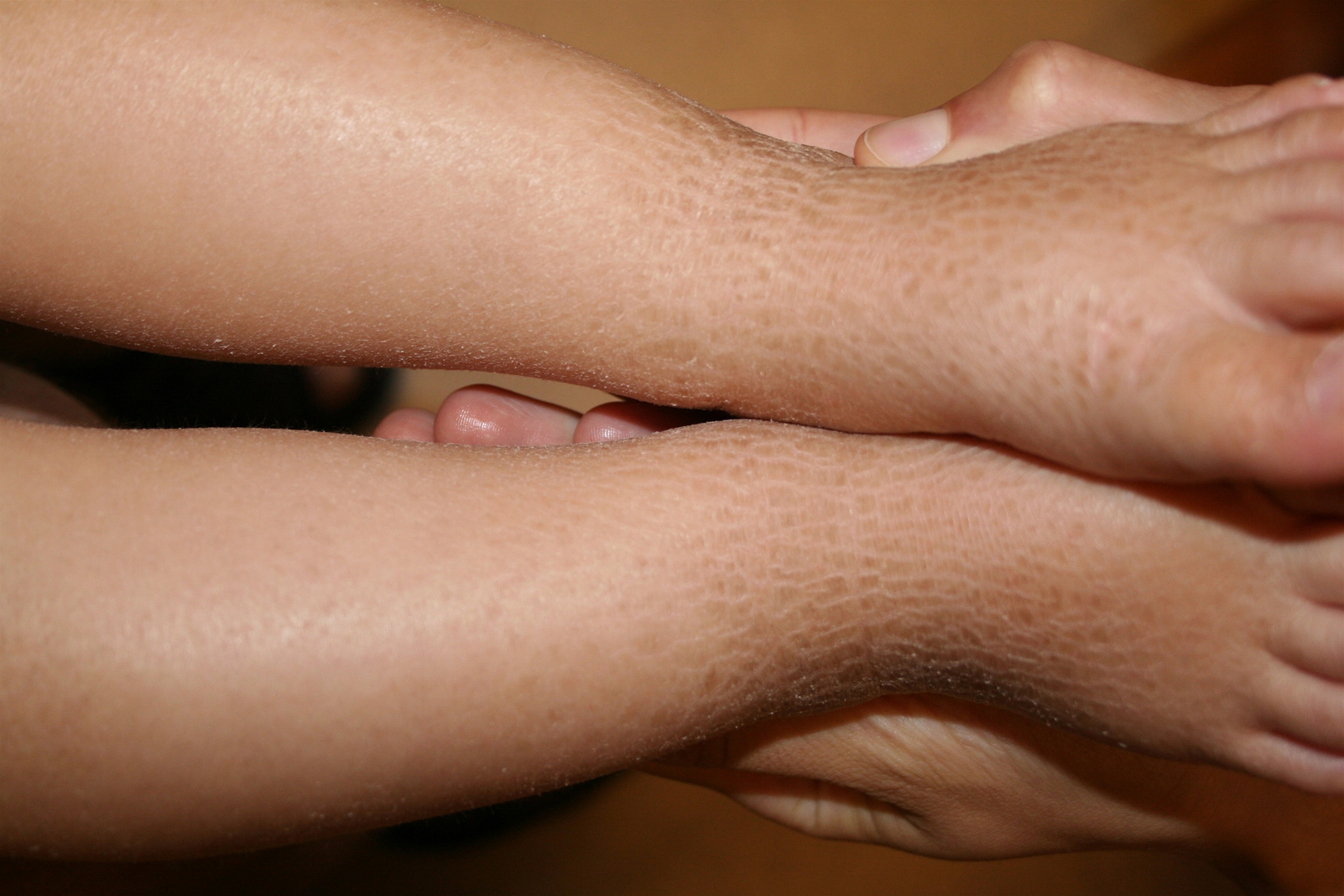 Ved ichthyosis (fiskeskælshud) er huden tør og skællende