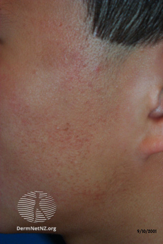 Keratosis pilaris i ansigt. Foto venligst udlånt af DermNet