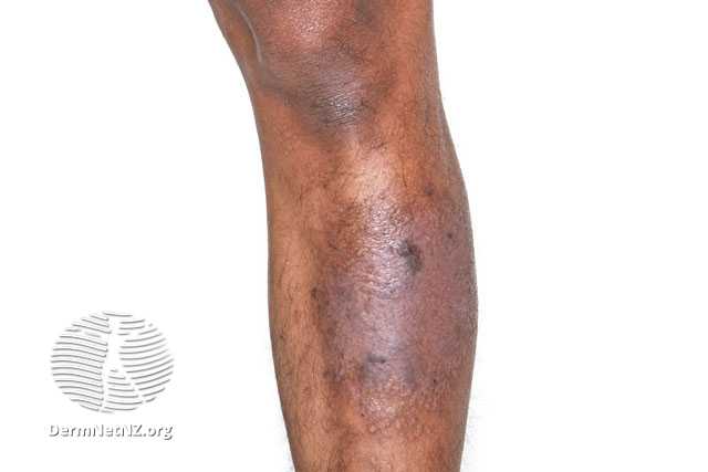 Neurodermatit på skinnebenFoto venligst udlånt af DermNet