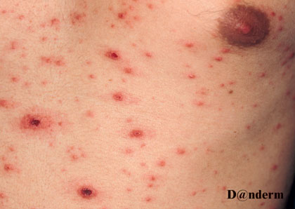 Virus spredes med blod og kan udløse allergilignende reaktioner i huden, eller virus kan slå sig ned i huden og lave en lokal betændelse