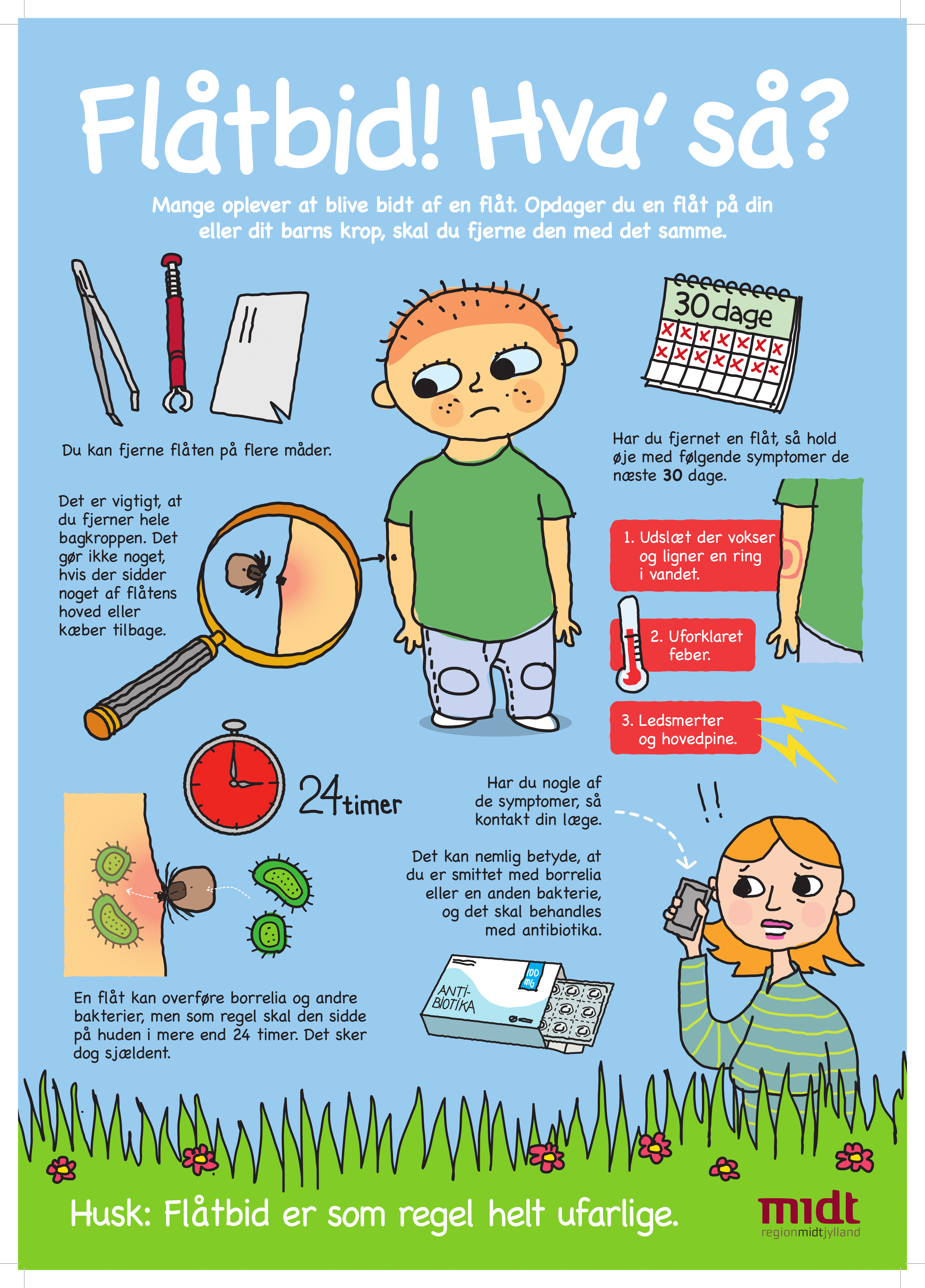 Plakat produceret af Region Midtjylland med gode råd om flåtbid.