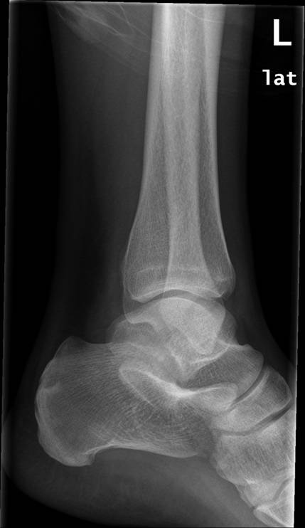Normalt røntgenbillede af venstre fodled i 2 projektioner