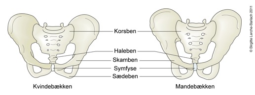 Kvindens bækken er rundere og bredere end mandens og har en større bækkenindgang, så der er plads til fødsel af et barn.