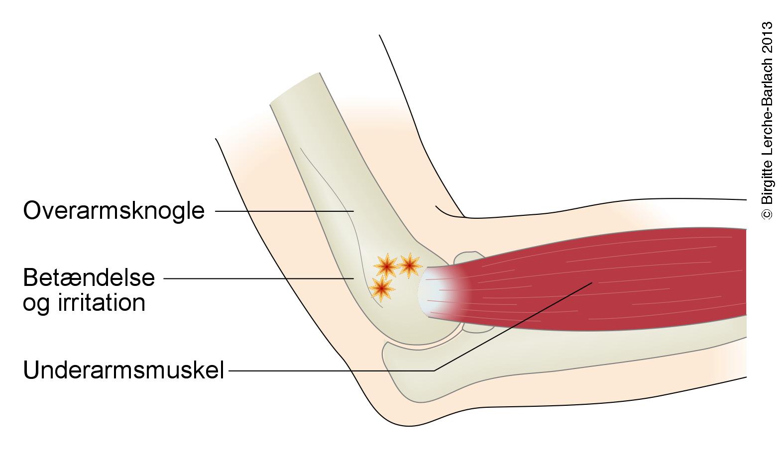 Tilstanden gør ondt og giver gener der, hvor de lange muskler fæstner nær albueleddet
