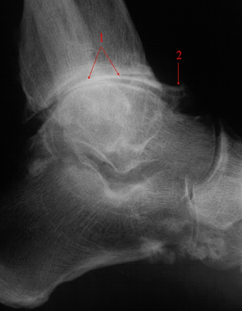 Det er en god ide at bruge sko med god støtte ved anklen, støddæmpning og med indlagt gænge i sålen under hælen. Dette kan dæmpe generne og muligvis bidrage til at bremse den videre udvikling.