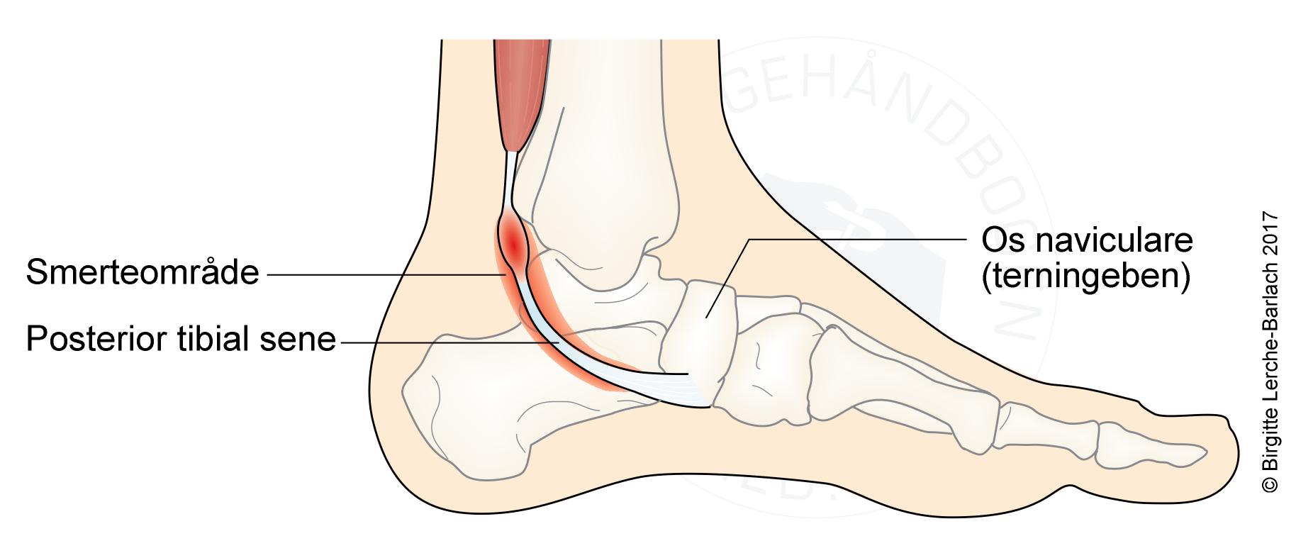Tibialis posterior syndrom skyldes en irritation omkring den sene, som løber ned på indersiden af fodleddet, lige bag ved den inderste ankelknude