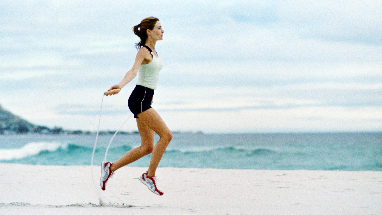 Kvinde løber på strand
