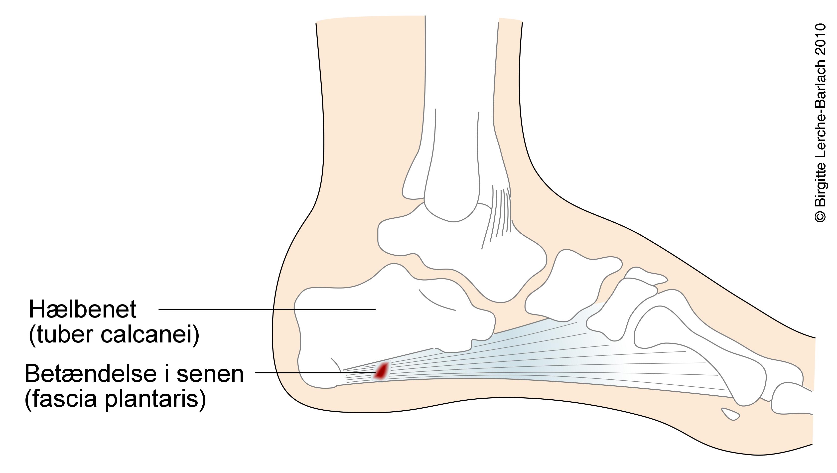 Dette er en skade på senepladen på undersiden af foden. Det antages, at skaden skyldes små rifter i denne seneplade som følge af overbelastning. Idrætsudøveren har hælsmerter eller smerter i fodbuen, som ofte er værre først på morgenen eller, man har siddet ned i lang. Det er ofte ømt, når du trykker på udspringet for senepladen på hælbenet.