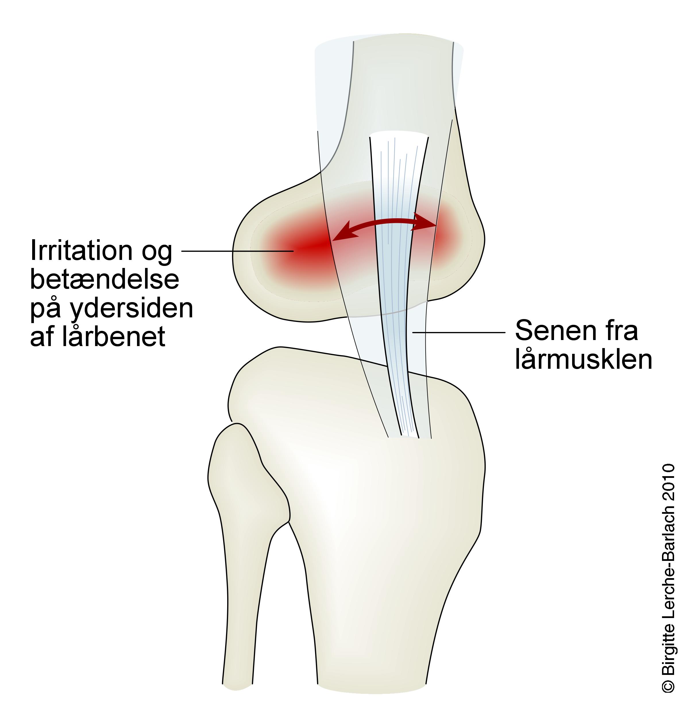Denne belastningsskade er den mest almindelige årsag til smerter på ydersiden af knæet hos løbere. Idrætsudøveren får skarpe smerter eller brænden på ydersiden af knæet, når vedkommende løber, cykler eller går.