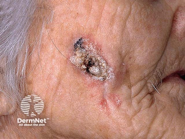 Ofte ligner pladecellekræft et uregelmæssigt knudret sår