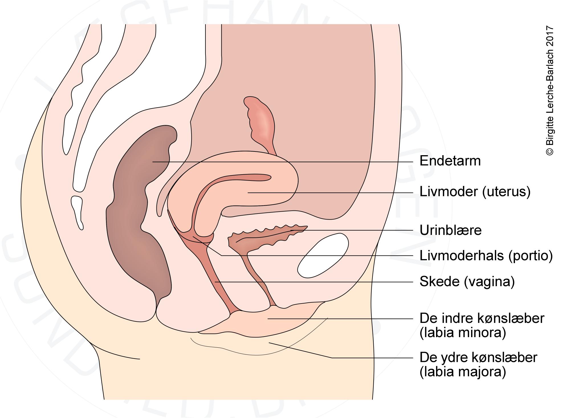 Lige nedenfor urinrørsåbningen er åbningen til skeden.