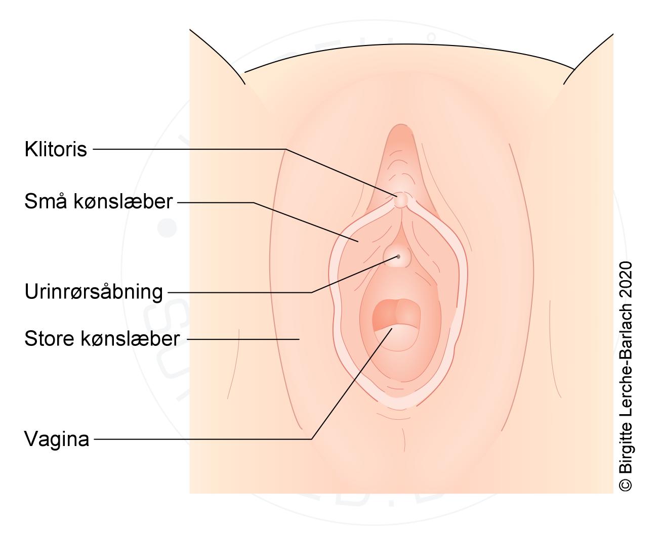Mellem kønslæberne, lige nedenfor klitoris, findes åbningen til urinrøret.