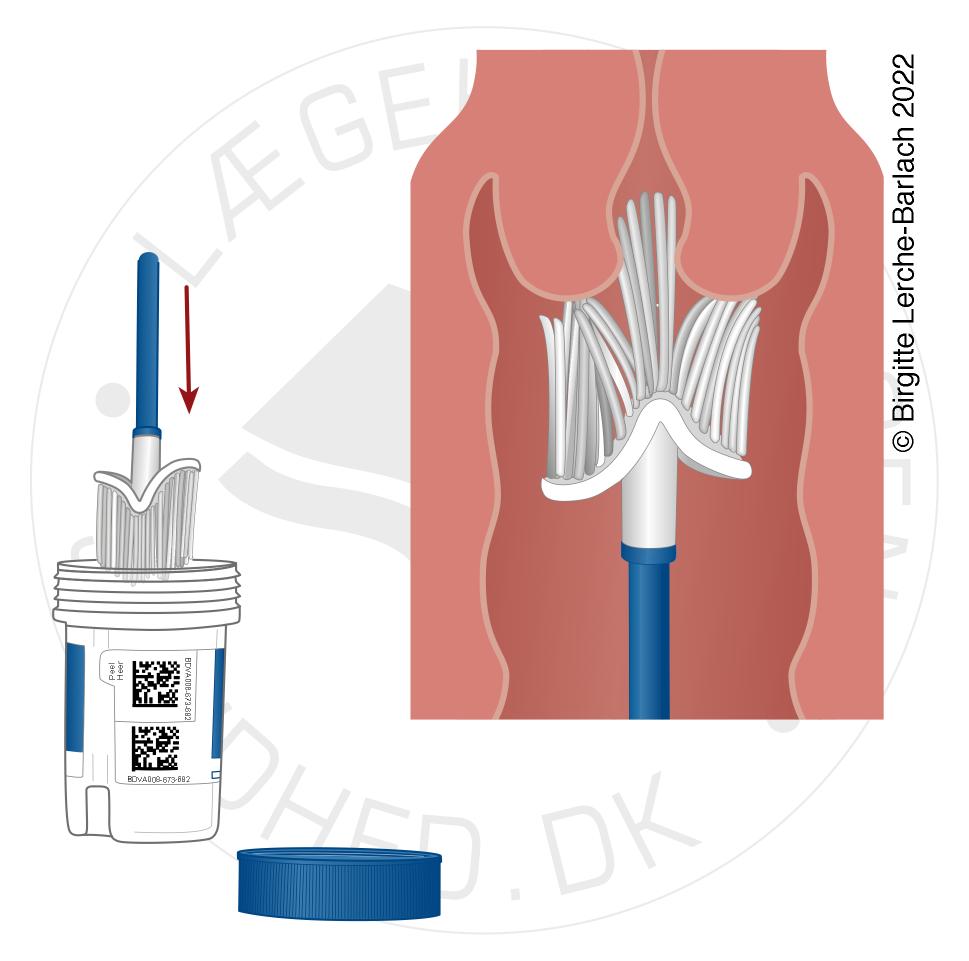 Når man skal undersøges, tager lægen en prøve fra livmoderhalsen med en lille børste