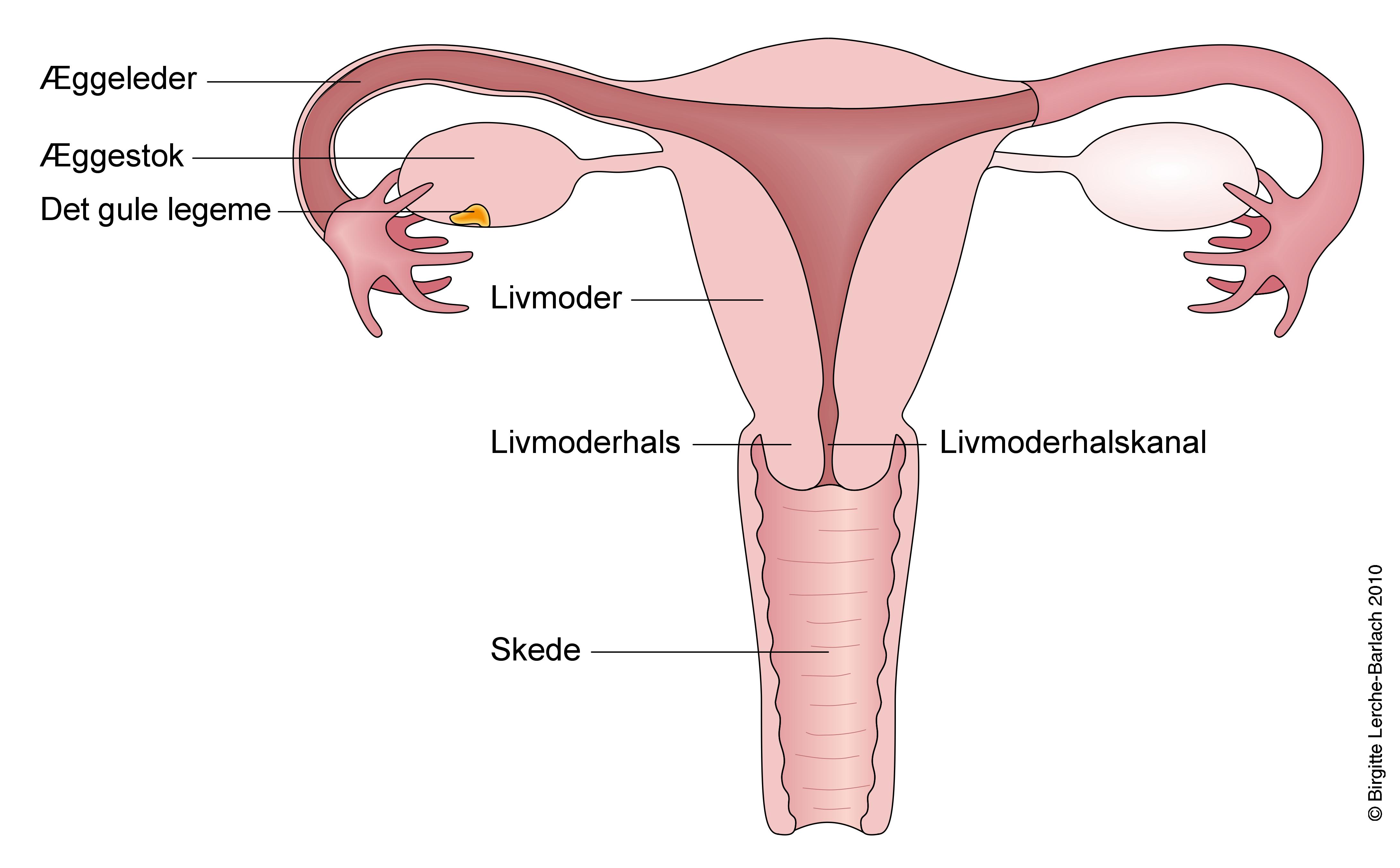 De indre kønsorganer består af skeden, livmoderhalsen, livmoderen, æggelederne og æggestokkene. Hver måned frigør den ene æggestok et æg. Det vandrer fra æggestokken via æggelederen ned til livmoderen. Hvis ægget ikke befrugtes, går det til grunde i løbet af et par dage.