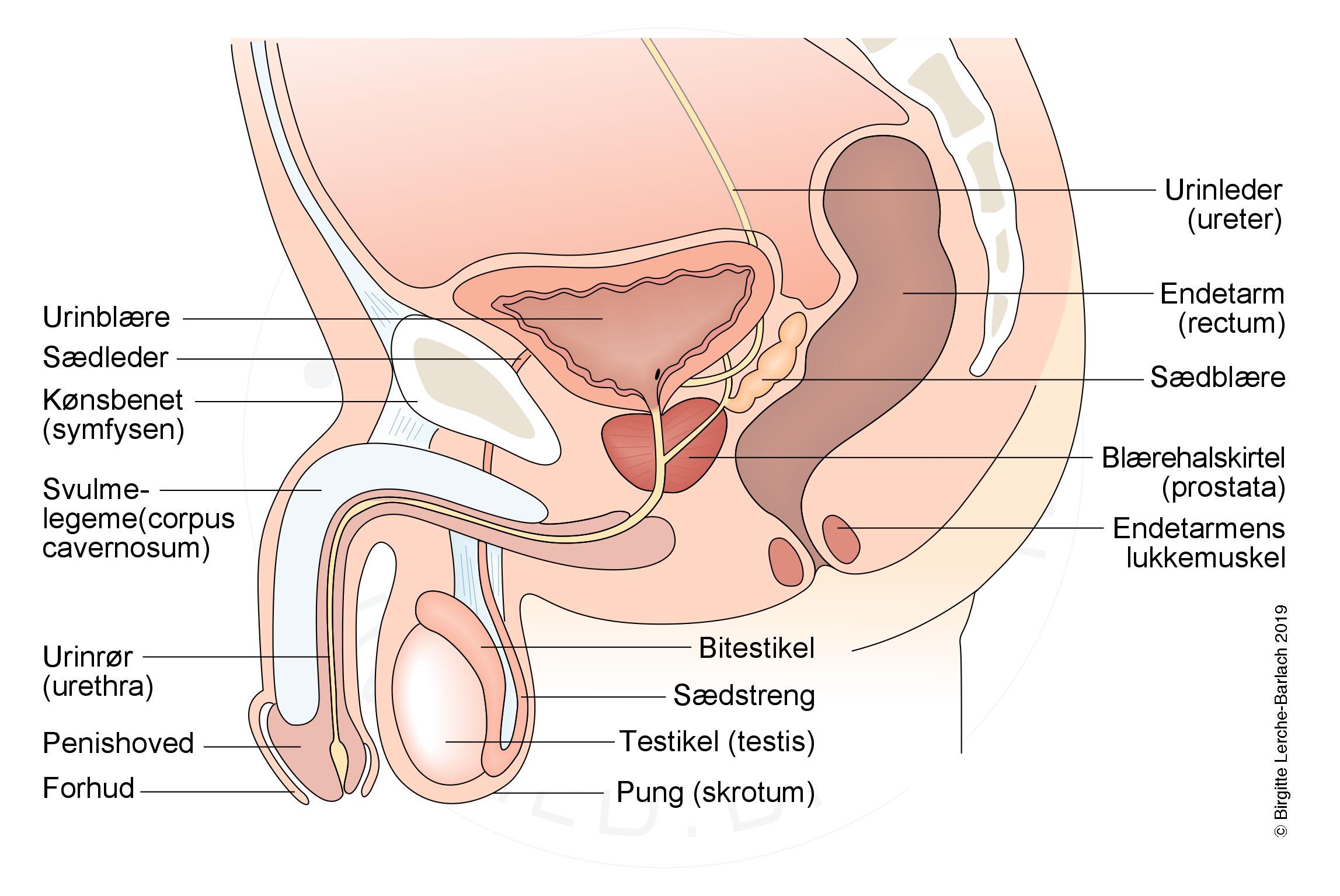 Mandens synlige kønsorganer består af penis og pungen med testiklerne.