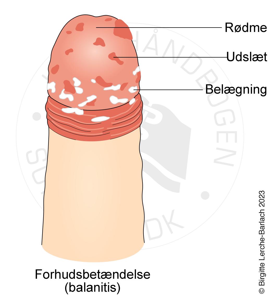 Balanitis er en betændelse under forhuden, som typisk medfører smerter, hævelse og rødme. Der kan forekomme belægninger og udflåd.