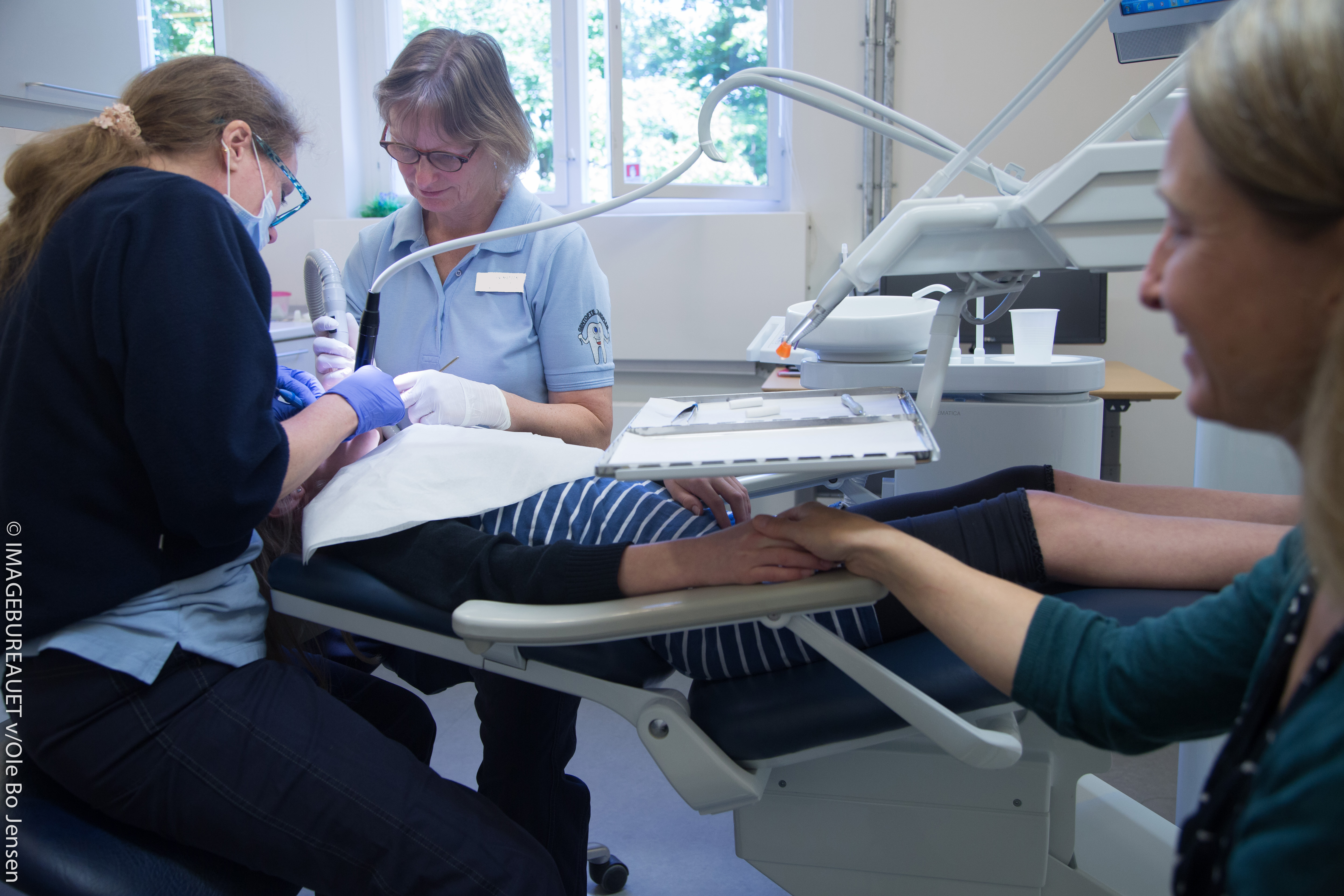 Du må gerne have din mor eller far med til tandlægen. Hvis du bliver bekymret undervejs, kan du trykke din mor eller far i hånden, så holder tandlægen en pause. Det kan nemlig være svært at tale, mens du får ordnet din tand.