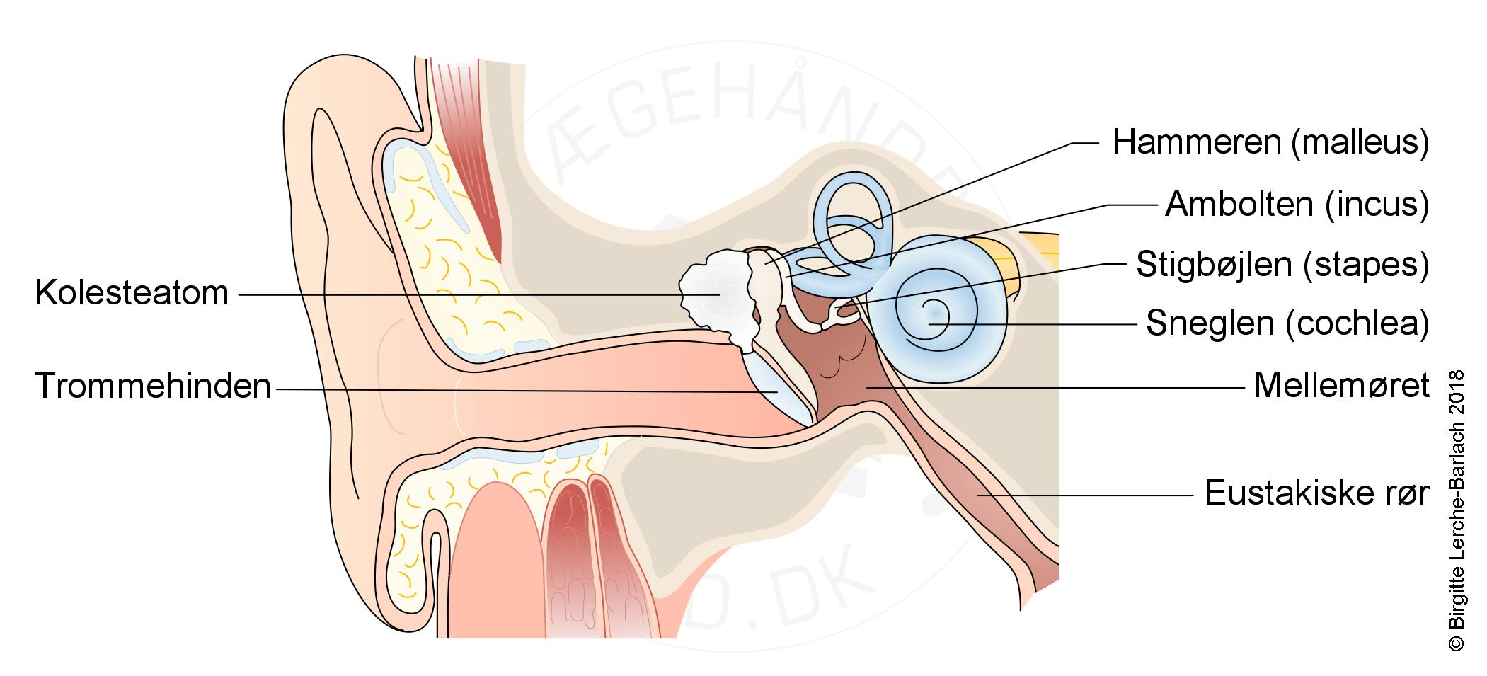 Din egen læge kan få mistanke om mellemørekolesteatom - og vil i så fald henvise til en øre-næse-halslæge.