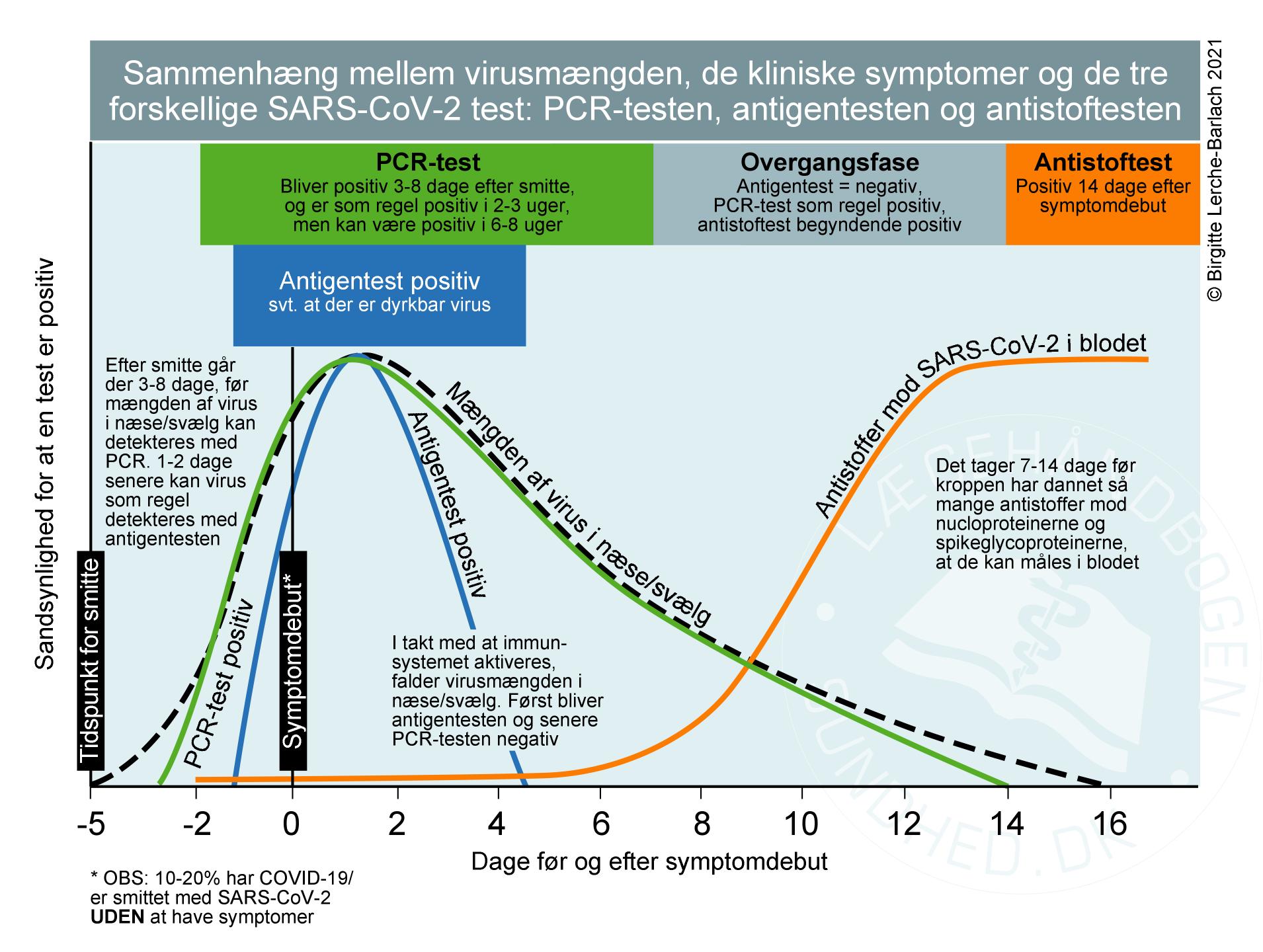 Derfor kan du med en grov tilnærmelse sig, at antigentesten er positiv i den periode, man smitter