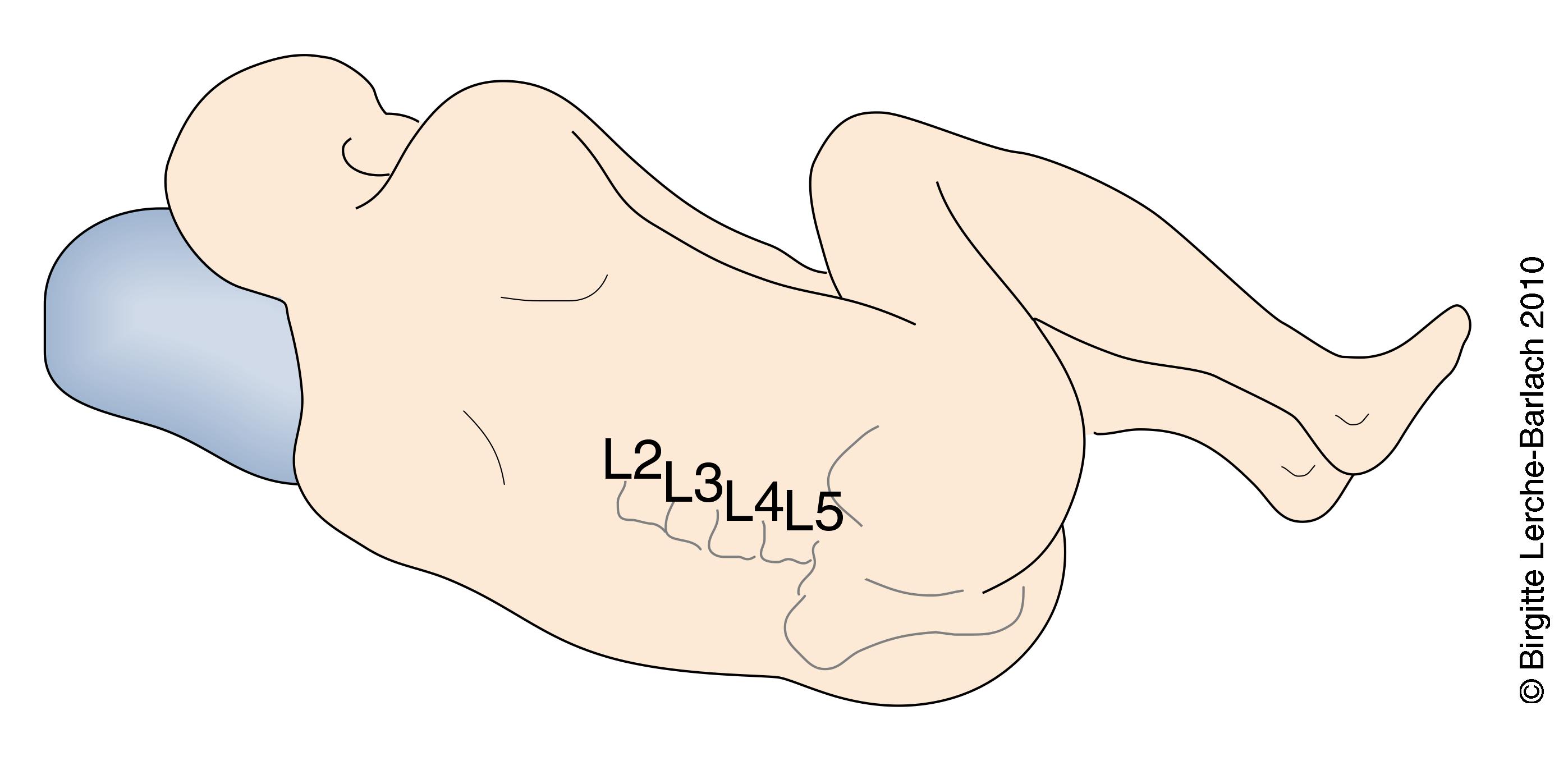 - Epiduralblokade anlægges ved, at personen skyder og krummer lænderyggen bagud, enten i liggende eller siddende stilling. Herved fremkommer der en åbning mellem ryghvirvlerne hvor man kan føre en nål og/eller et kateter ind i epiduralrummet