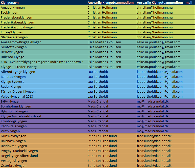 Oversigt over klynger og kontaktperson i KAP-H's Klyngeteam